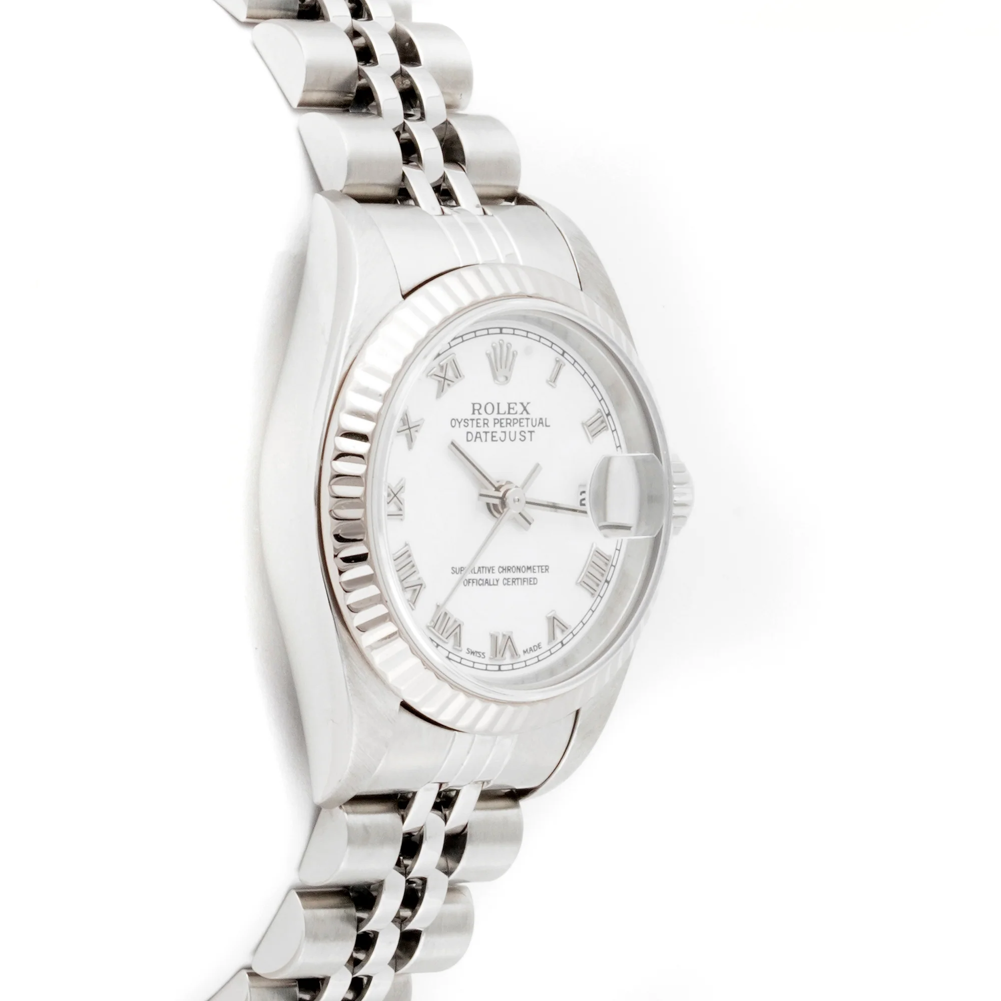 Rolex Lady-Datejust 26mm Stainless Steel & White Gold 69174 White Dial | Roman Numerals hour markers, Fluted bezel
